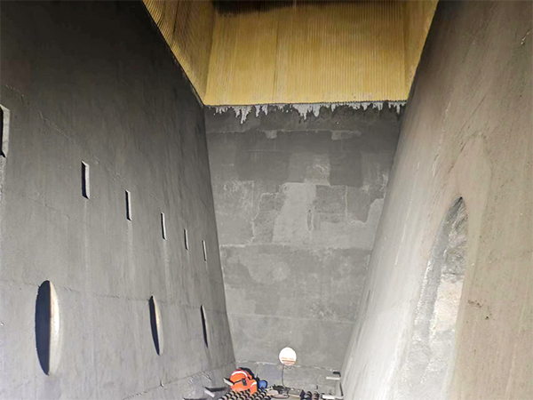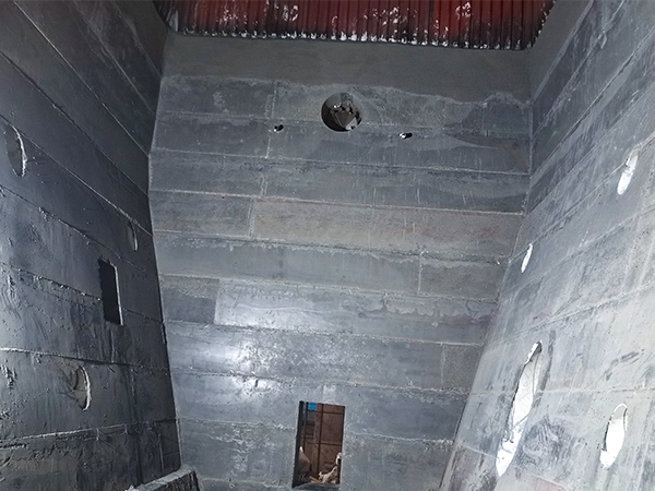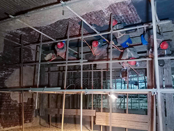 榮盛耐材施工人員正在施工 四川4x90循環(huán)流化床鍋爐內襯維修現(xiàn)場 鍋爐內襯不定形耐火材料施工效果 四川4x90循環(huán)流化床鍋爐···