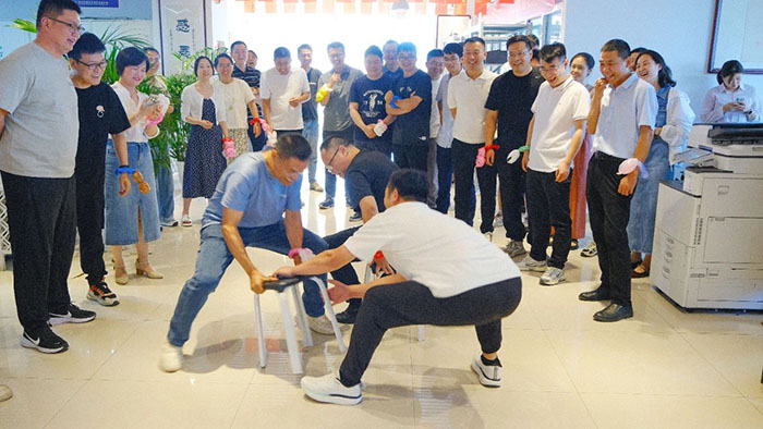 「搶椅子」游戲里,伴著歡快的音樂(lè),選手們一邊走動(dòng)一邊緊盯椅子,眼神充滿(mǎn)警惕。音樂(lè)戛然而止的瞬間,大家如離弦之箭沖向椅子,現(xiàn)場(chǎng)一片混亂卻趣味十足。觀眾們屏氣凝神,不時(shí)為驚險(xiǎn)的搶座瞬間發(fā)出驚呼聲,緊張刺激的氛圍讓全場(chǎng)熱情高漲。