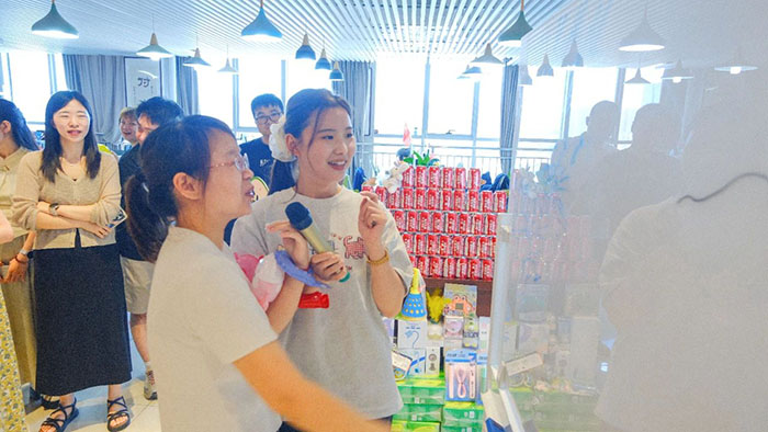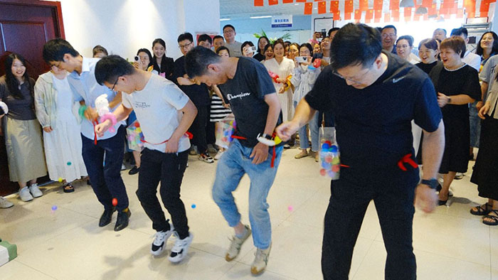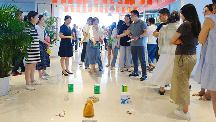 接著近半年入職的小伙伴們輪流登臺(tái)做自我介紹,并分隊(duì)開(kāi)始進(jìn)行丟沙包。這邊用力擲出,那邊左閃右避,不時(shí)做出高難度跳躍動(dòng)作。觀眾們的加油聲高過(guò)一陣又一陣,現(xiàn)場(chǎng)洋溢著青春活力氛圍。