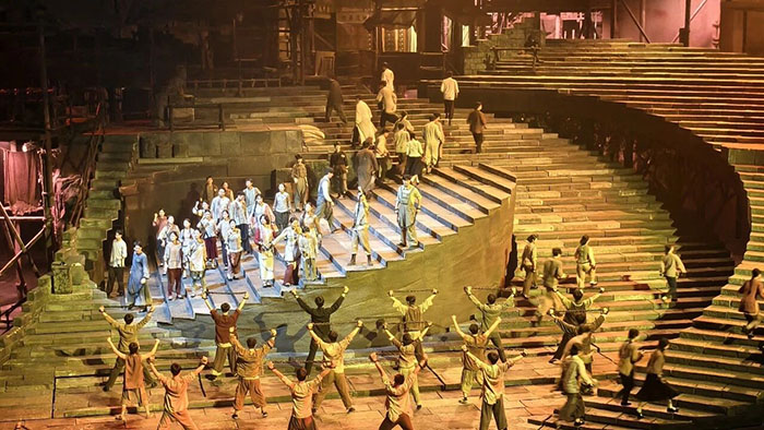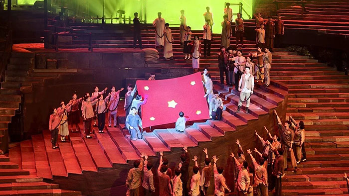 劇中,革命者在獄中得知新中國(guó)成立消息后,即便不知guoqi樣式仍共同繡制紅旗的場(chǎng)景,以及面對(duì)敵人威逼利誘堅(jiān)守初心的動(dòng)人情節(jié),讓現(xiàn)場(chǎng)眾人深受震撼、熱淚盈眶。70分鐘的演出,不僅是藝術(shù)的盛宴,更是精神的洗禮,讓大家在沉浸式體驗(yàn)中深化了對(duì)紅巖精神的理解,汲取了攻堅(jiān)克難、勇毅前行的精神力量 。
