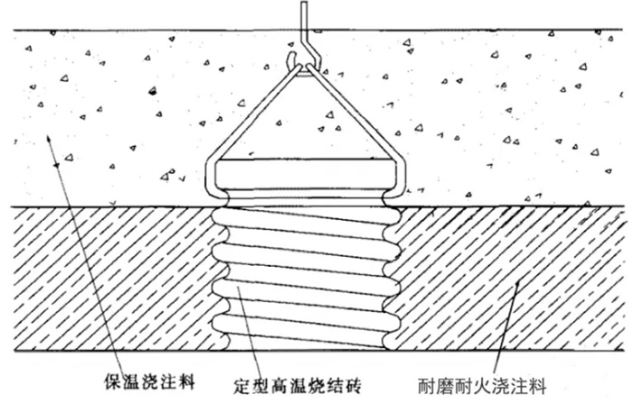 (3)采用固定抓釘和高溫燒結(jié)磚的澆注料結(jié)構(gòu)形式