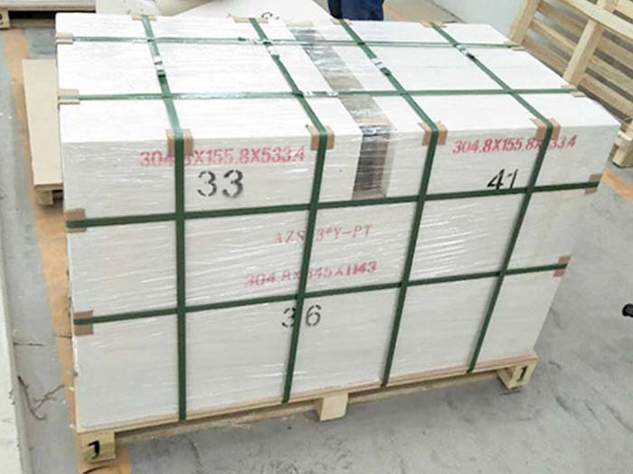 國(guó)內(nèi)玻璃窯爐外普遍采用電熔鋯剛玉磚和α-β剛玉磚、β剛玉磚砌筑。電熔鋯剛玉磚的高溫和抗玻璃液的性能優(yōu)異,這是它獲得了燒結(jié)耐火材料不可能獲得的抗侵蝕性非常好的斜鋯英石與α-Al2O3的共晶體,所以它作為玻璃窯爐熔化部池壁磚是非常合適的。