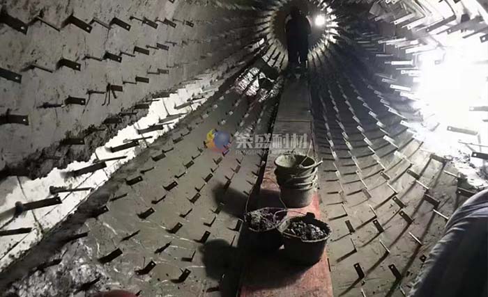 4.擋輪:擋輪為一限制裝置,限制氧化鋅回轉(zhuǎn)窯窯體在托輪上的位置,但它不能制止窩體的上下移動。