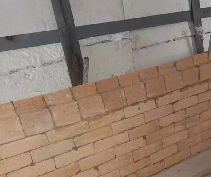 墻體的耐火材料應(yīng)該錯(cuò)縫砌筑,磚與硅鈣板接合時(shí),應(yīng)分步施工;不的同硅鈣板通縫,且按設(shè)計(jì)要求留設(shè)膨脹縫;砌體不得出現(xiàn)歪斜現(xiàn)象,灰漿飽滿度達(dá)到95%以上,磚表面多余部分灰漿要刮平;磚砼結(jié)構(gòu)的墻體,澆注料部位應(yīng)平整光滑,澆注料上面的磚應(yīng)等澆注料有一定的強(qiáng)度后方能砌筑。